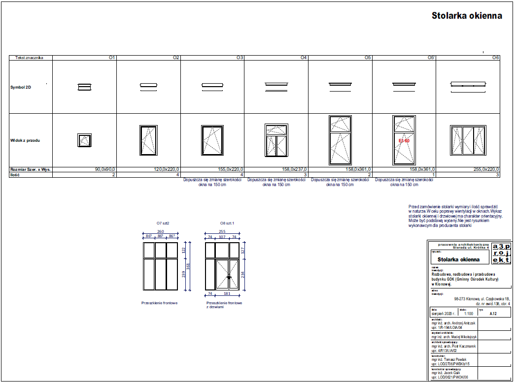 „W związku z ogłoszonym przetargiem na "Rozbudowę, nadbudowę i przebudowę budynku GOK w Klonowej", proszę o wskazanie, które okna w projektowanym budynku są uchylne, rozwierno-uchylne bądź jako fixy. Na zestawieniu stolarki okiennej załączonym do projektu budowlanego nie uwzględniono tych danych.”